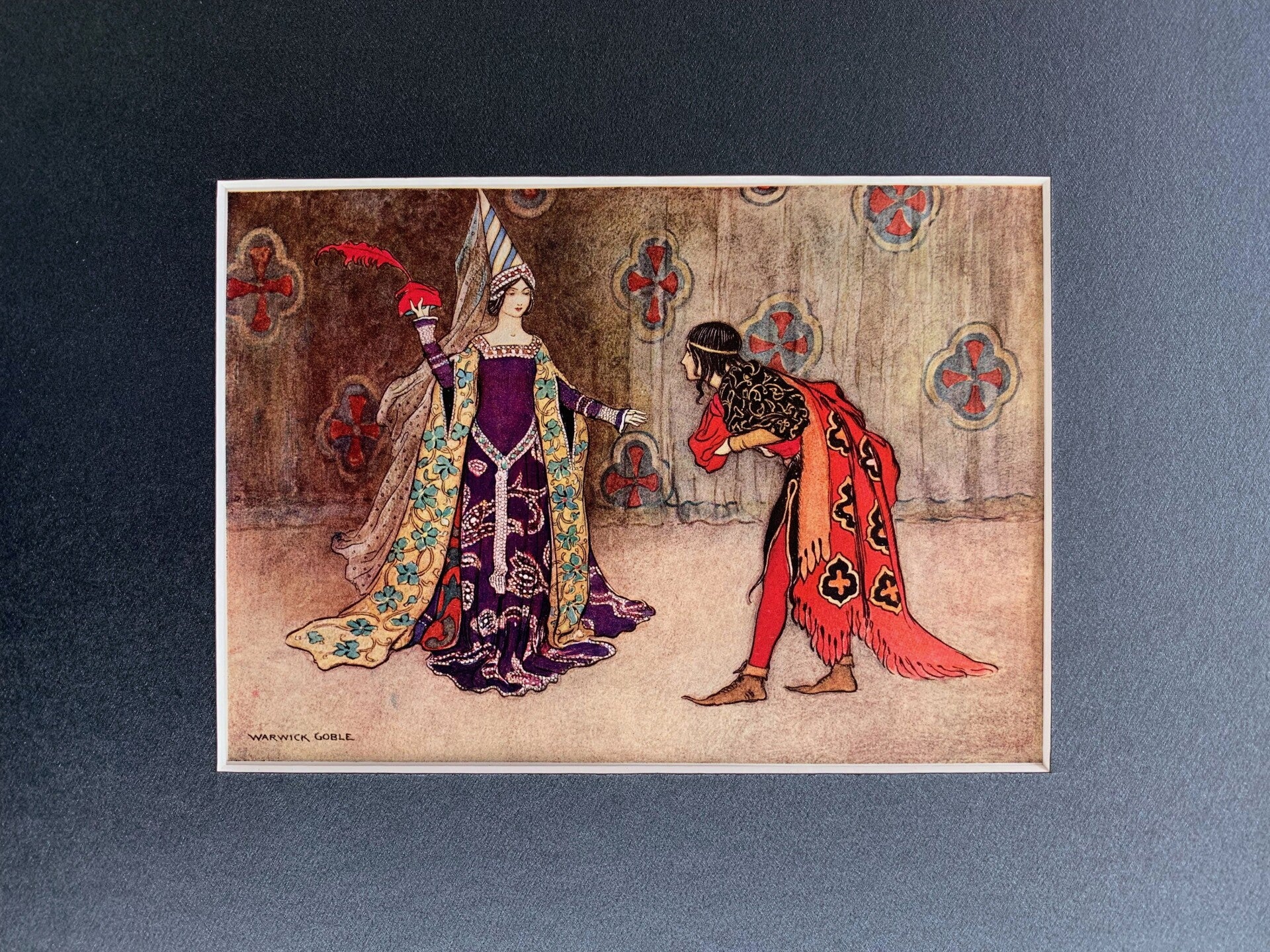 Easily style your kid's room with this exquisite tipped-in coloured plate with vibrant colours and incredible detail. This plate depicts the story of 'The Invisible Prince" and was made by Warwick Goble.